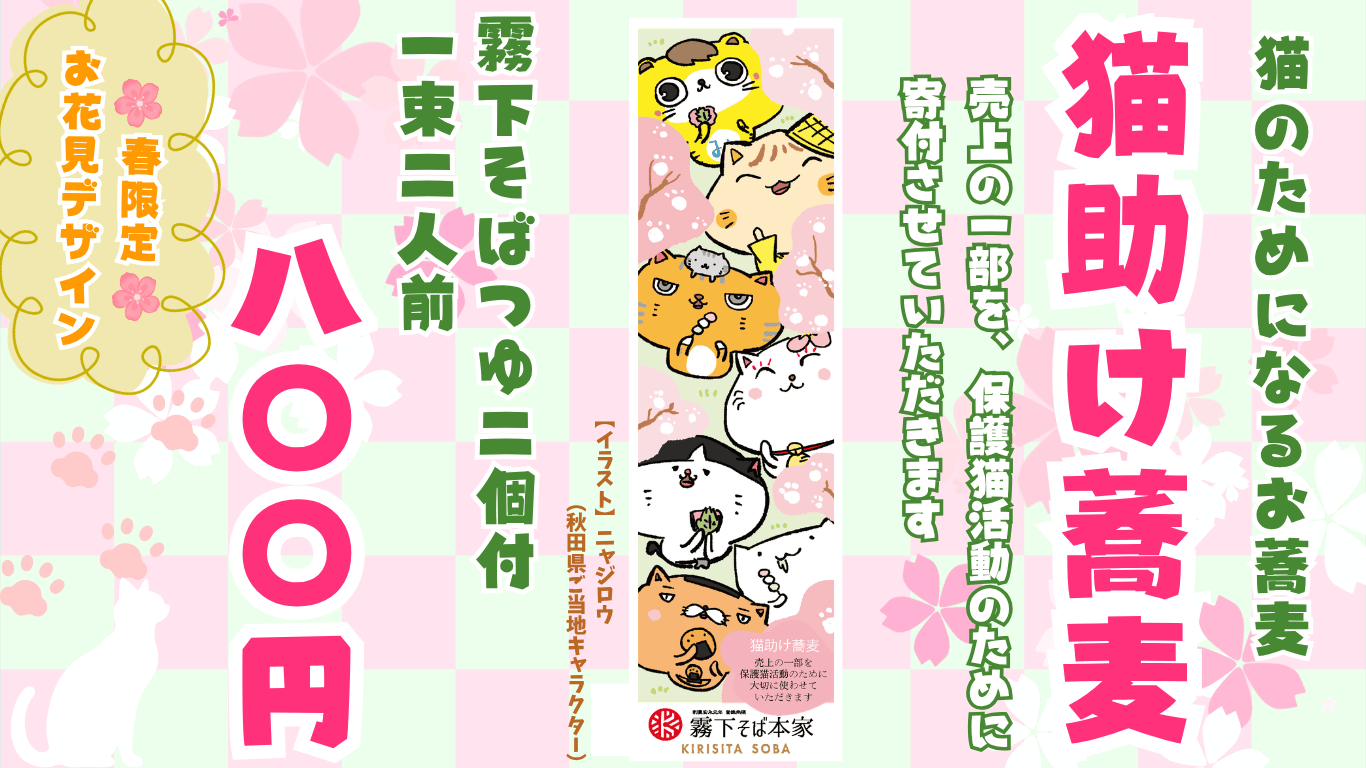 保護猫活動支援【猫助けそば】お花見Ver. 乾麺つゆ付2人前 (5月末までの販売)