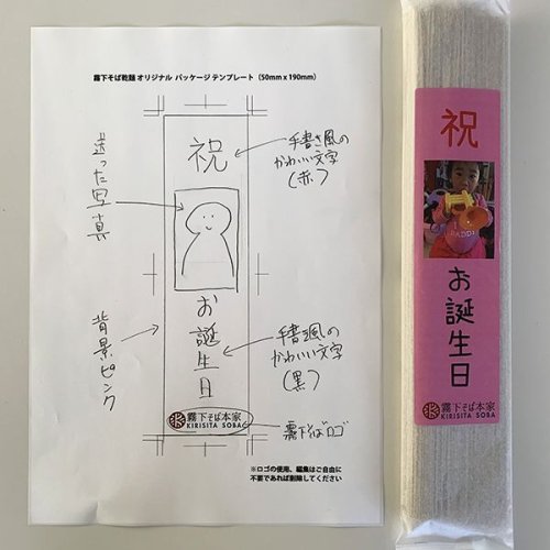 お好きなデザインを霧下そば乾麺のパッケージにいたします!