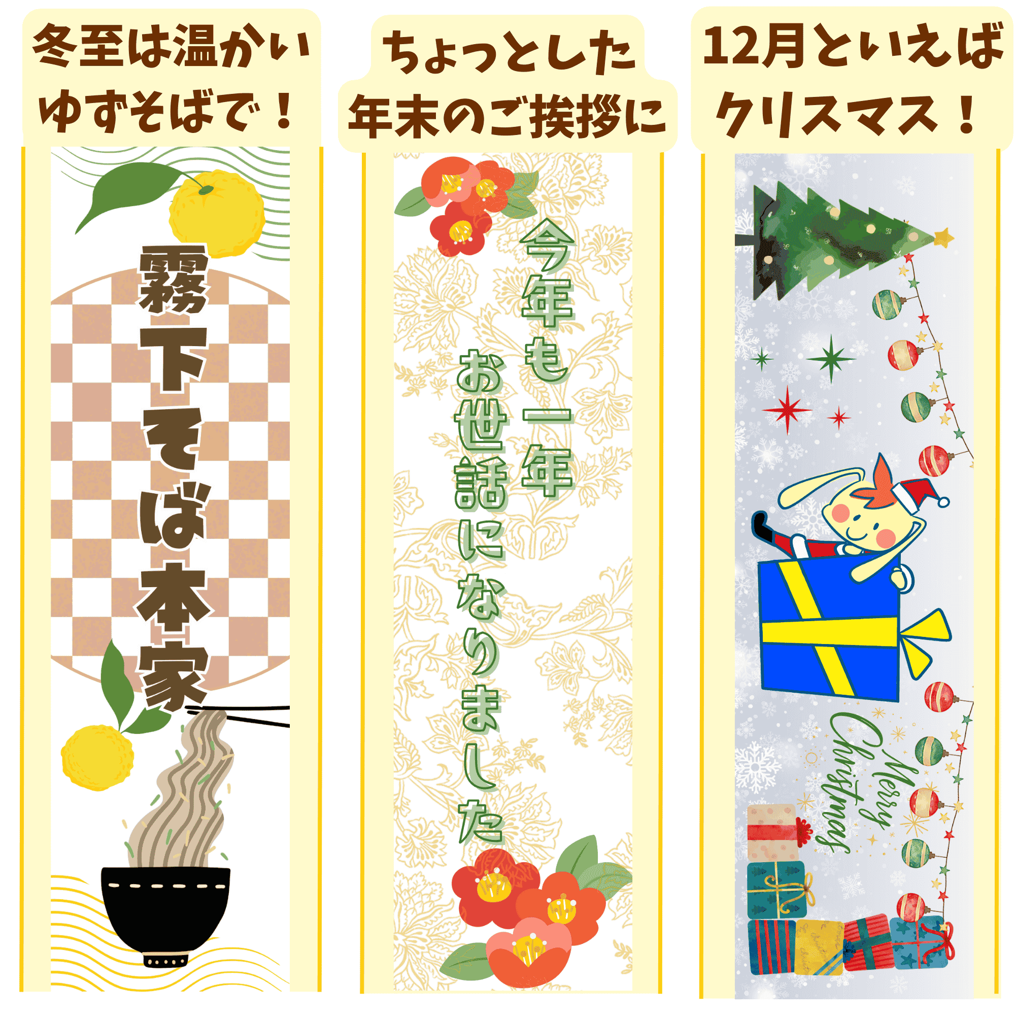 霧下そば乾麺 季節のパッケージ12月【冬至そば】/ 【年末そば】/ 【クリスマスそば】